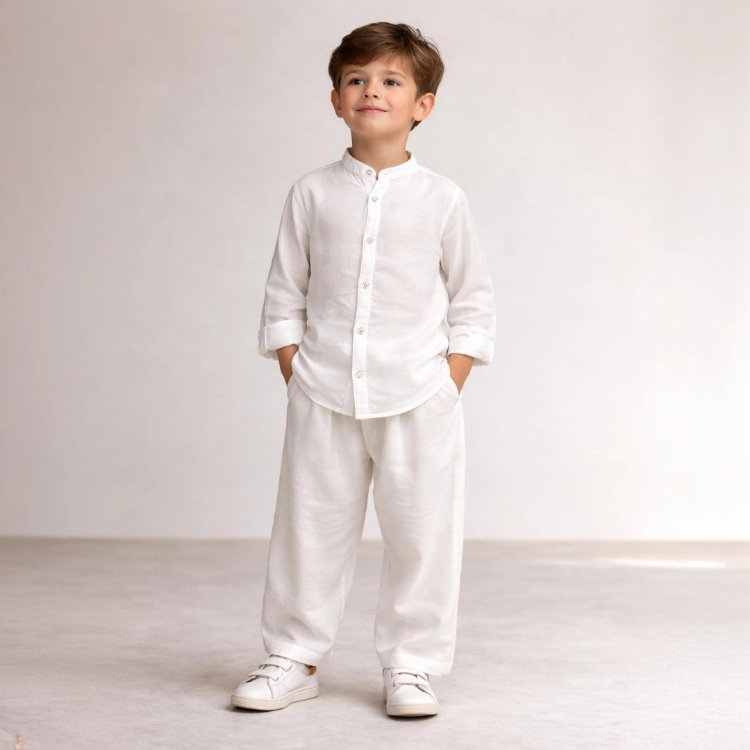By Mini Molla imzasını taşıyan Yelek & Şalvar 2’li Umre Takımı Seti, çocuklar için özel olarak tasarlanmış sade, rahat ve anlamlı bir kombin sunar.