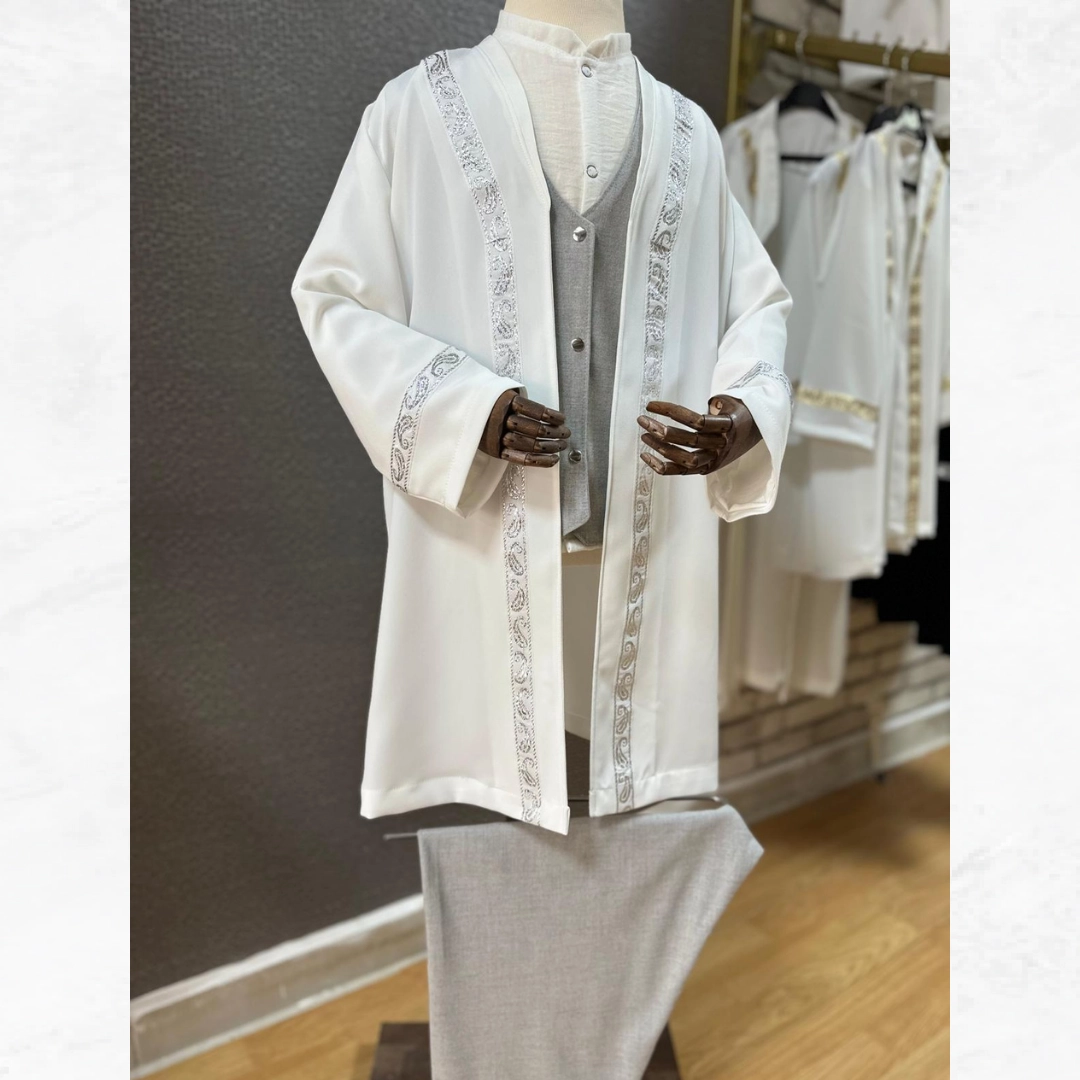 Ürünün daha dökümlü durması için ölçü seçiminde 3–4 cm uzun tercih edilmesi önerilir. By Mini Molla çocuk cübbe modeli; kaliteli kumaşı, zarif detayları ve güçlü tasarımıyla hem şık hem de konforlu bir seçenek sunar. Özel günlerde fark yaratan, sade ama etkileyici bir görünüm arayan aileler için özenle hazırlanmıştır.
