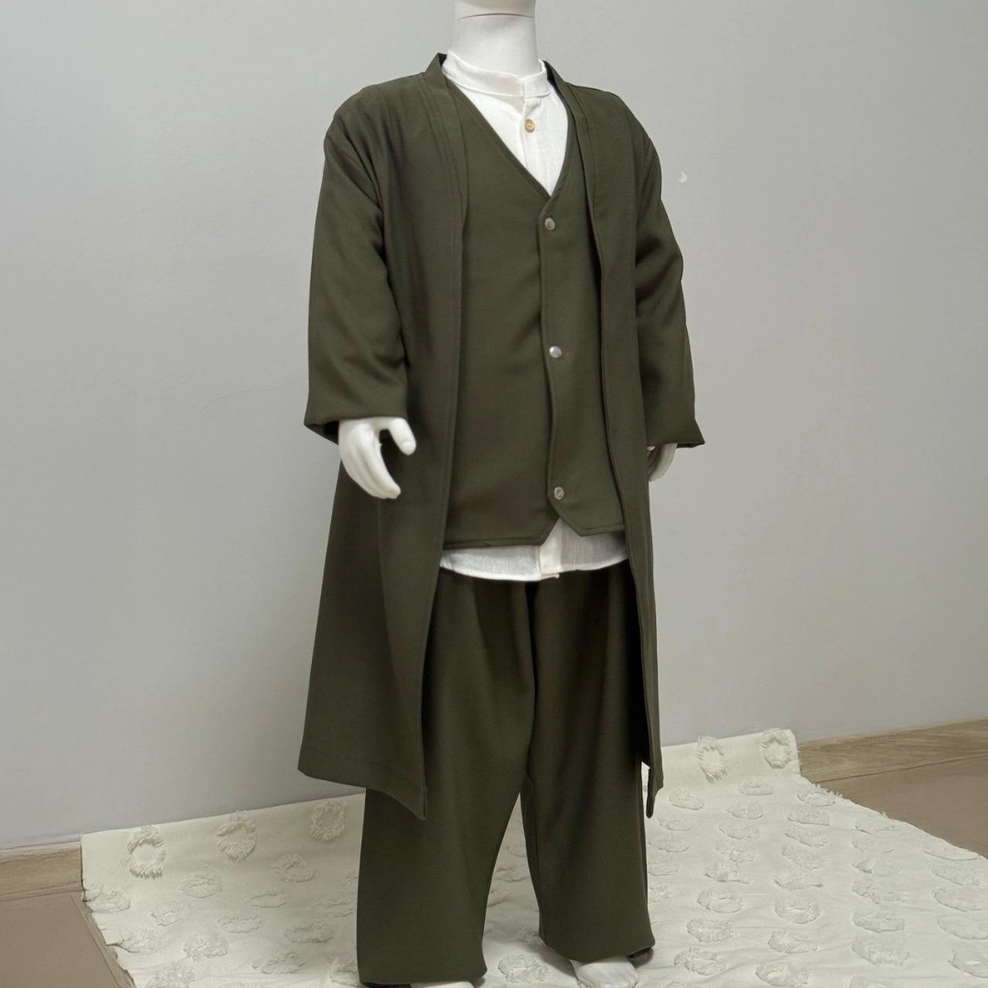 Haki Yelek Şalvar Gömlek Cübbe 4’lü Takım Seti
