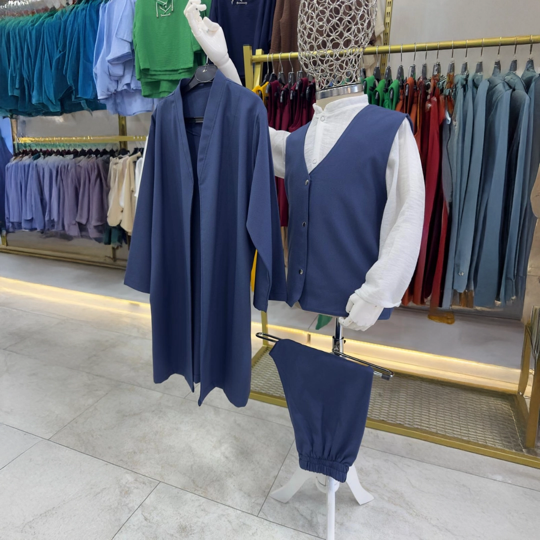 Koyu Mavi Yelek Şalvar Gömlek Cübbe 4’lü Takım Seti