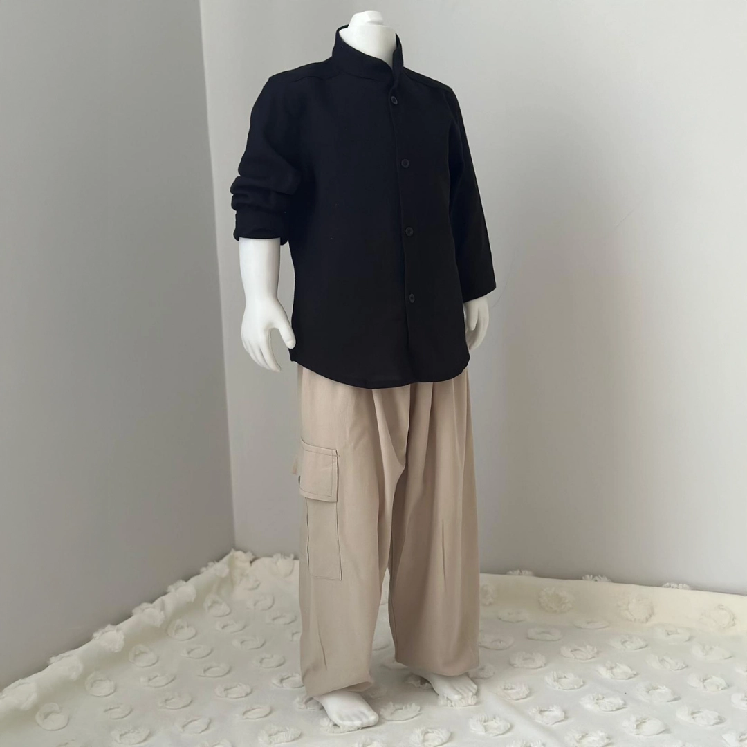 Siyah Gömlek Açık Kahve Şalvar 2’li Umre Takımı