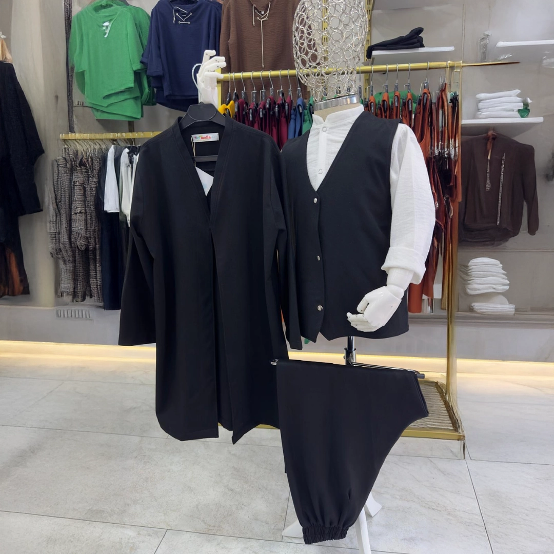 Geleneksel çizgilerin modern bir yorumla buluştuğu bu tasarım; bayram, özel gün, davet, söz, nişan ve çeşitli organizasyonlarda şık ve asil bir stil oluşturur. Rahat kalıplı şalvar hareket özgürlüğü sunarken, gömlek ve yelek kombinasyonu dengeli ve bütünlüklü bir görünüm sağlar. Uzun cübbe tasarımı ise takıma güçlü ve dikkat çekici bir hava kazandırır. Dökümlü yapısı sayesinde hem salaş hem de düzenli bir duruş elde edilir.