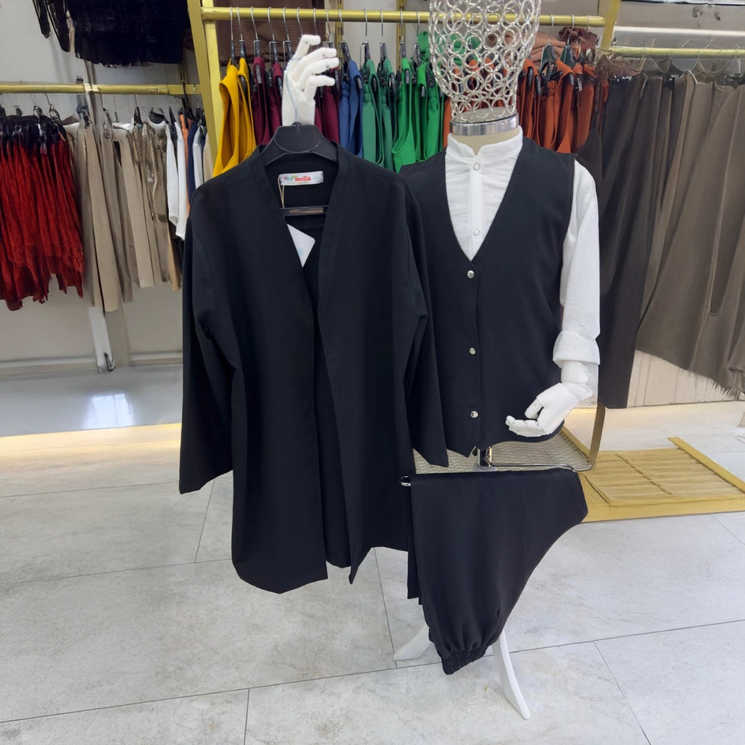 Siyah Yelek Şalvar Gömlek Cübbe 4’lü Takım Seti